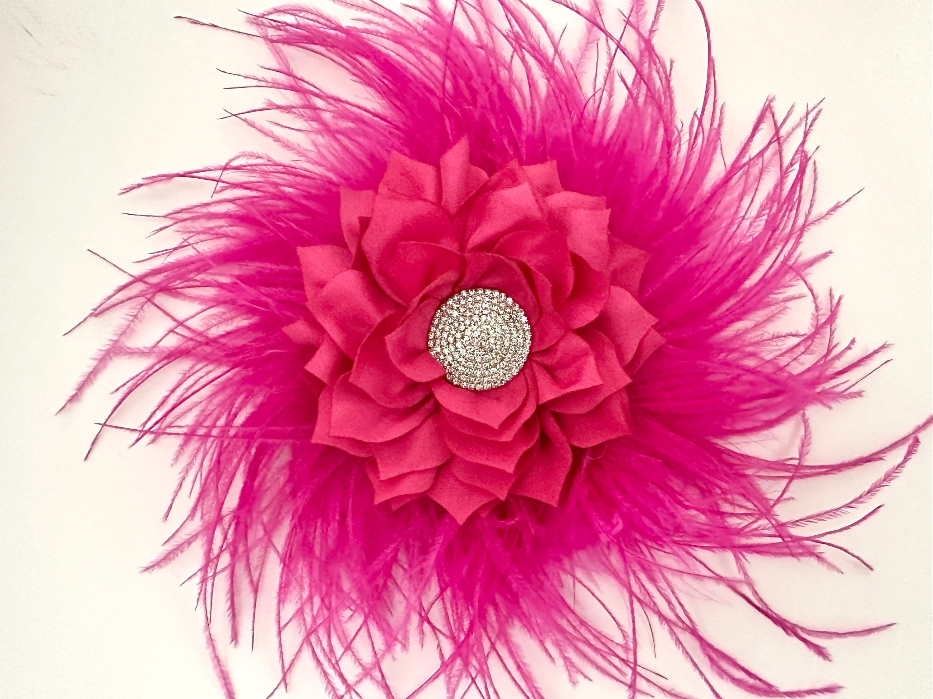 All shades of Pink, Shocking Pink, Hot Pink Light Pink, Blush Flower Feather Fascinator Hair Clip or Brooch Pin