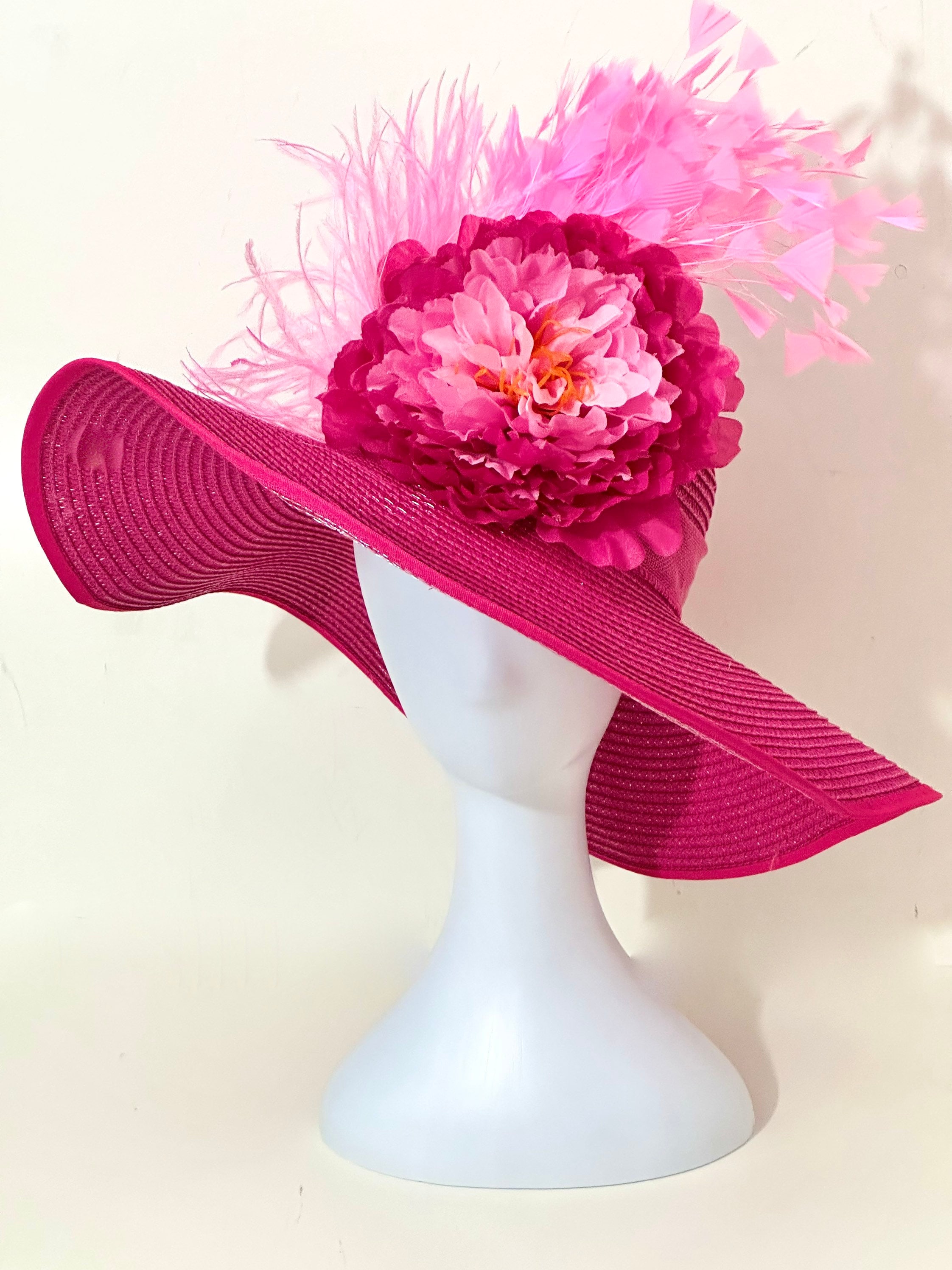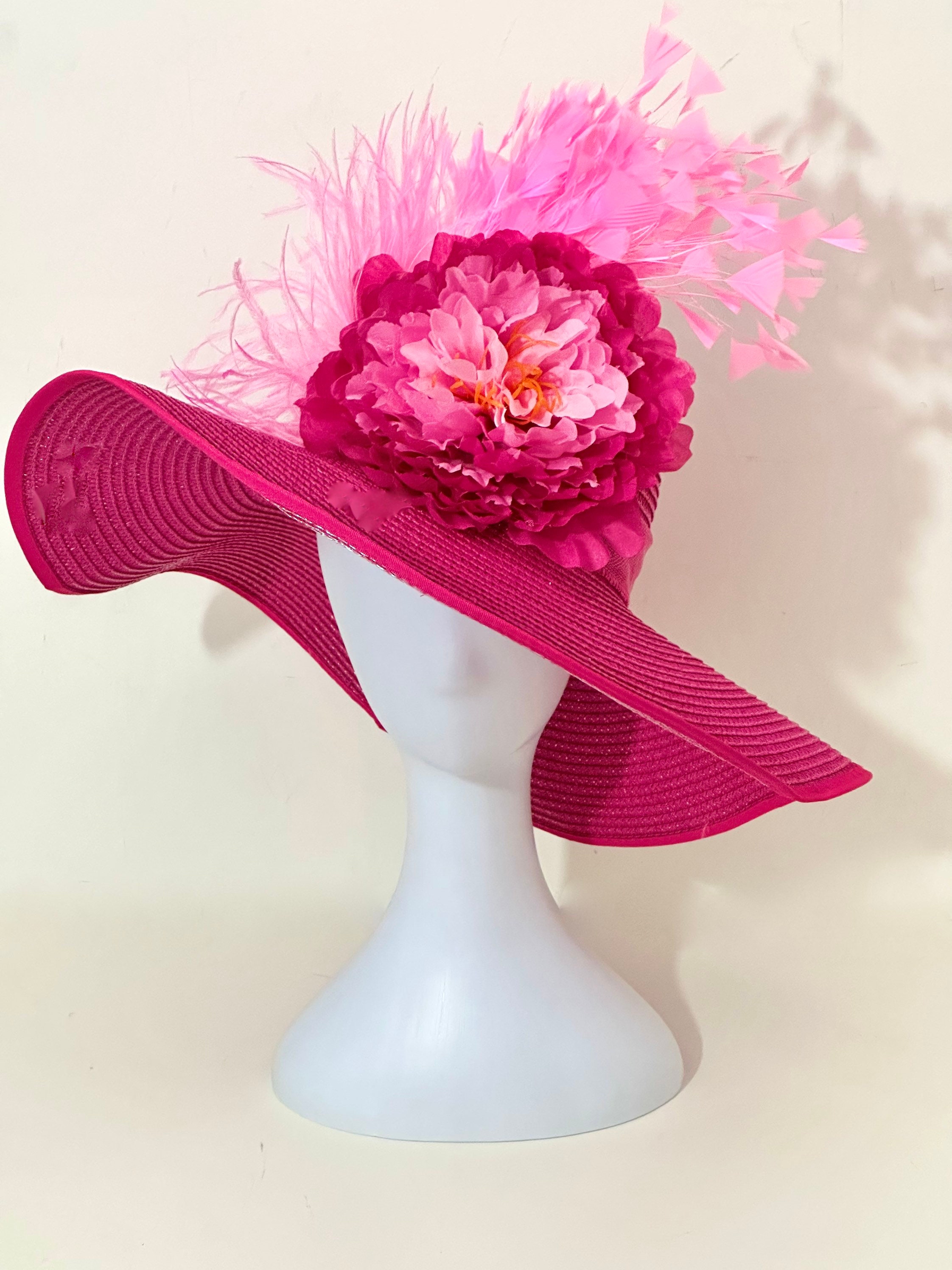 Fancy Fabulous, large two-tone, pink flower with Coque and Marabou Feathers.