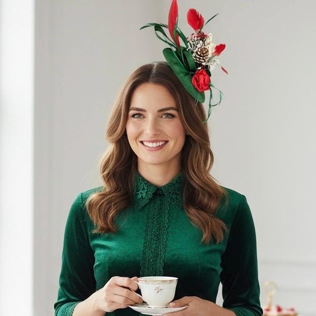 Green Texture Sinamay Disk base, Holly Foliage, Christmas Tree, Coque Feather Headband Hat