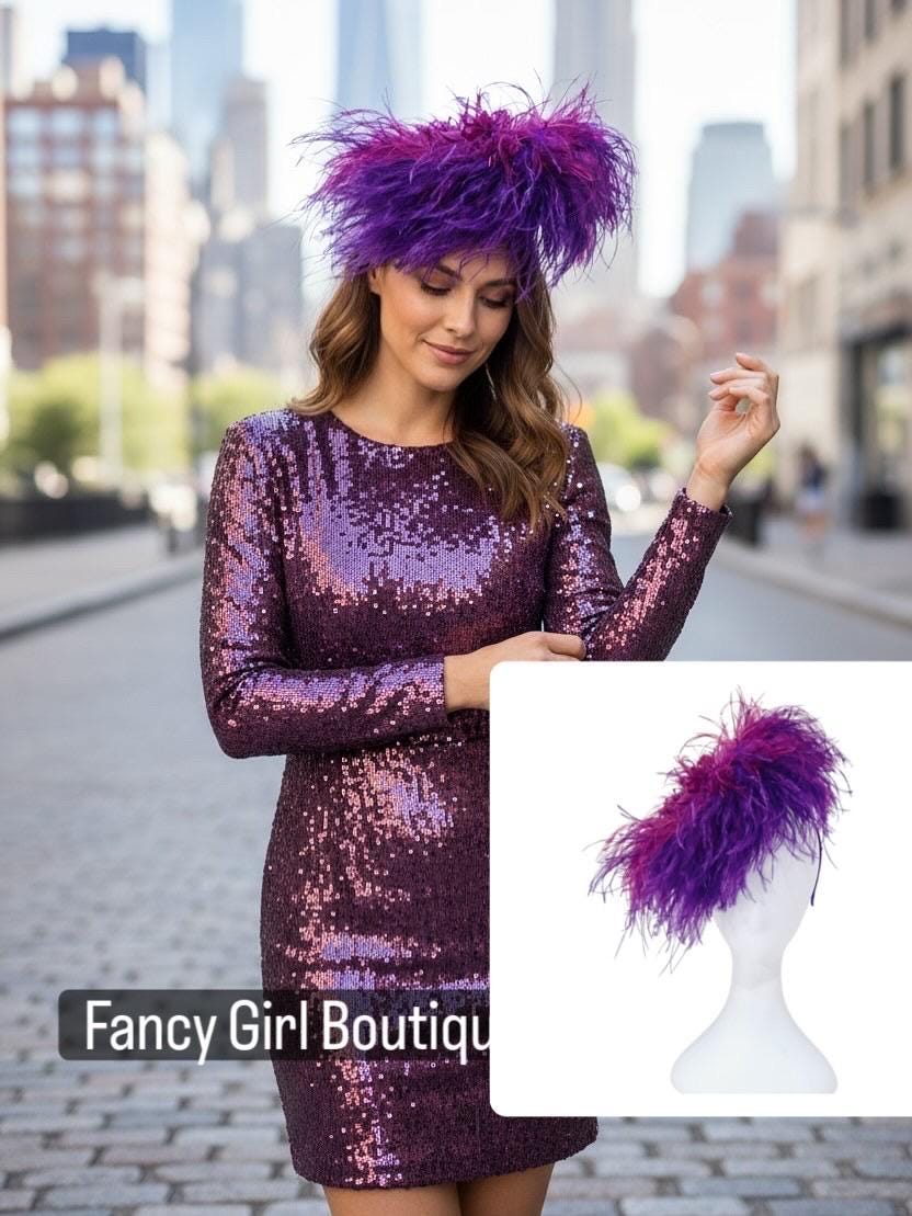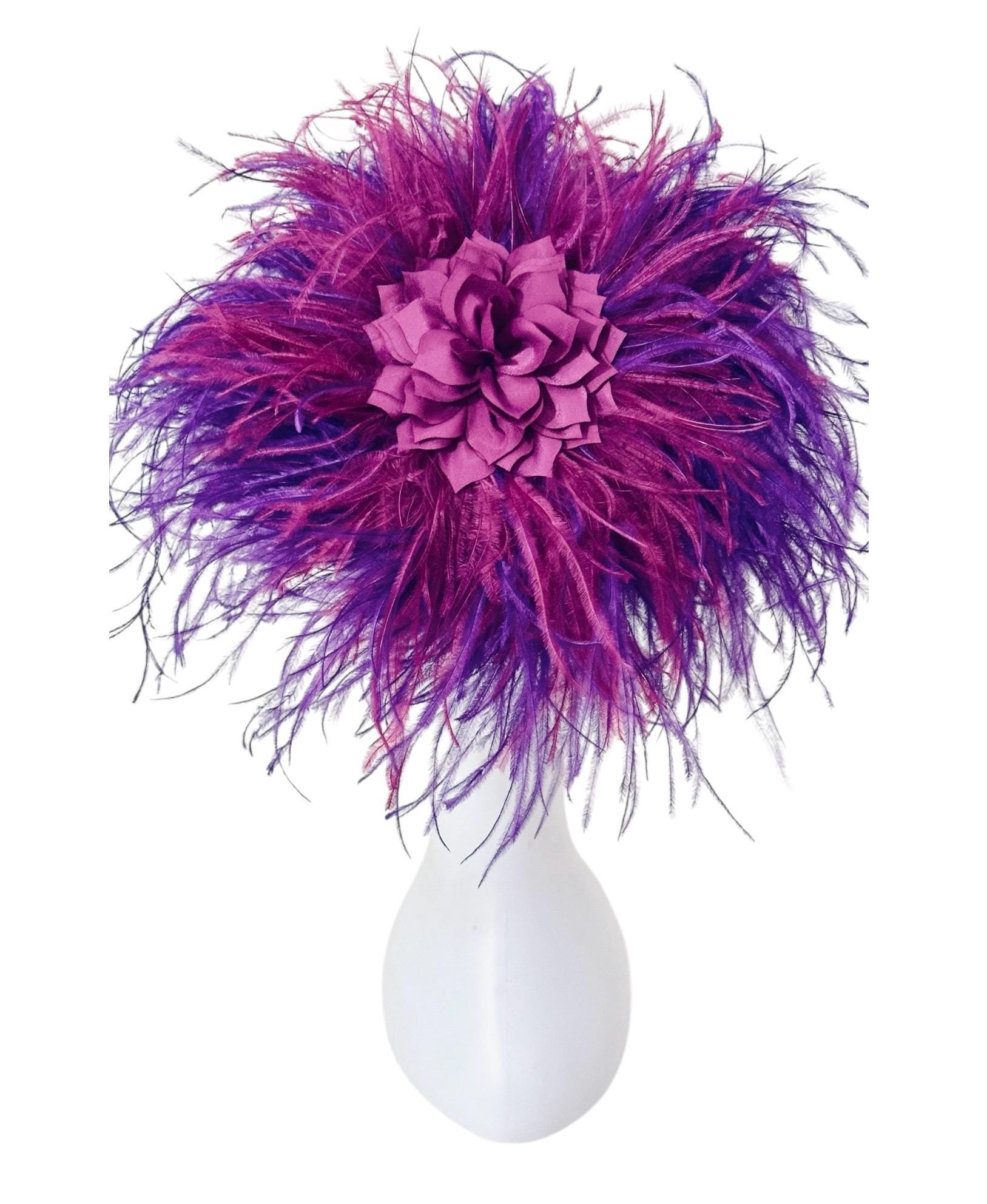 Blend of Berry Viva Magenta, Dusty Rose, Purple Plum Marabou Ostrich Feather Blended with 4.5” Flower