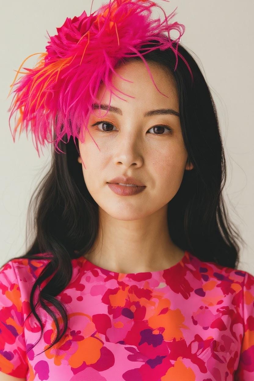 Bright Pink Green Feather Fascinator Headband Combinations,