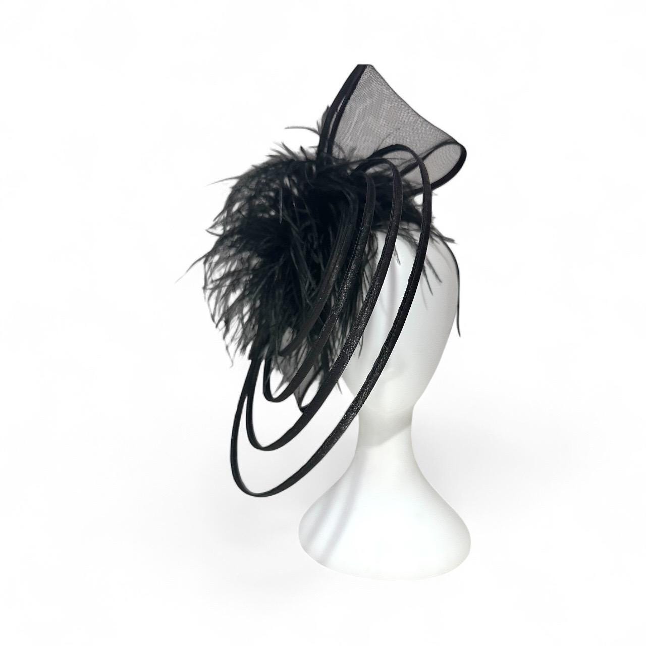 Bow Fascinator, Feather Bow Modern Artistic Spiral Fascinator Headband, Feather Bow Fascinator Headband,