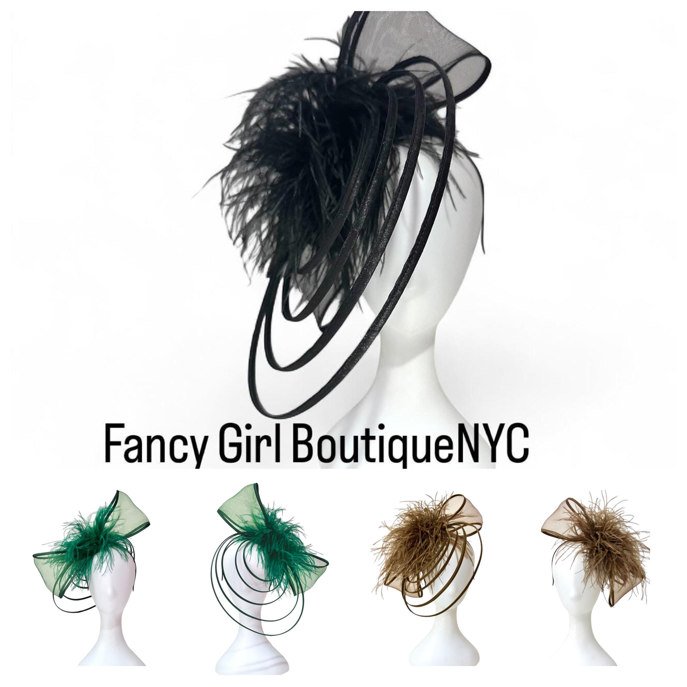 Bow Fascinator, Feather Bow Modern Artistic Spiral Fascinator Headband, Feather Bow Fascinator Headband,