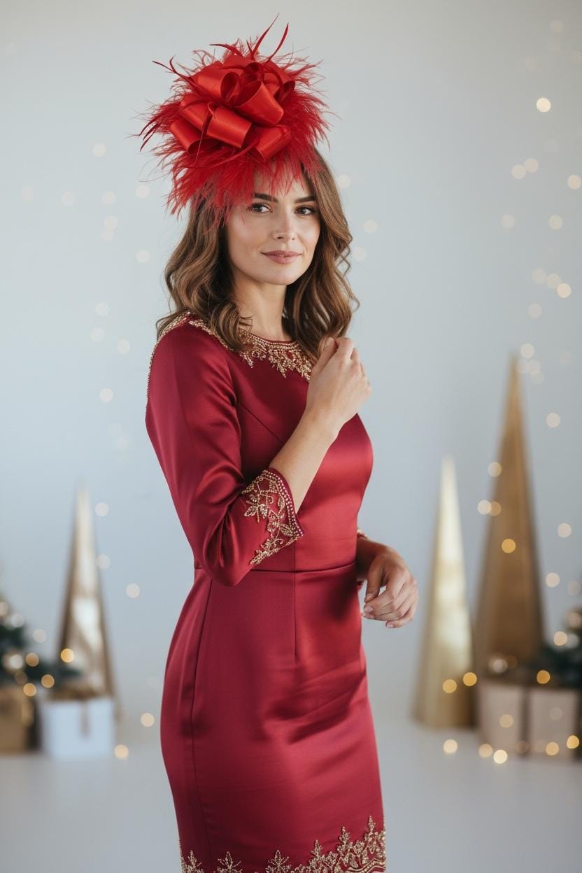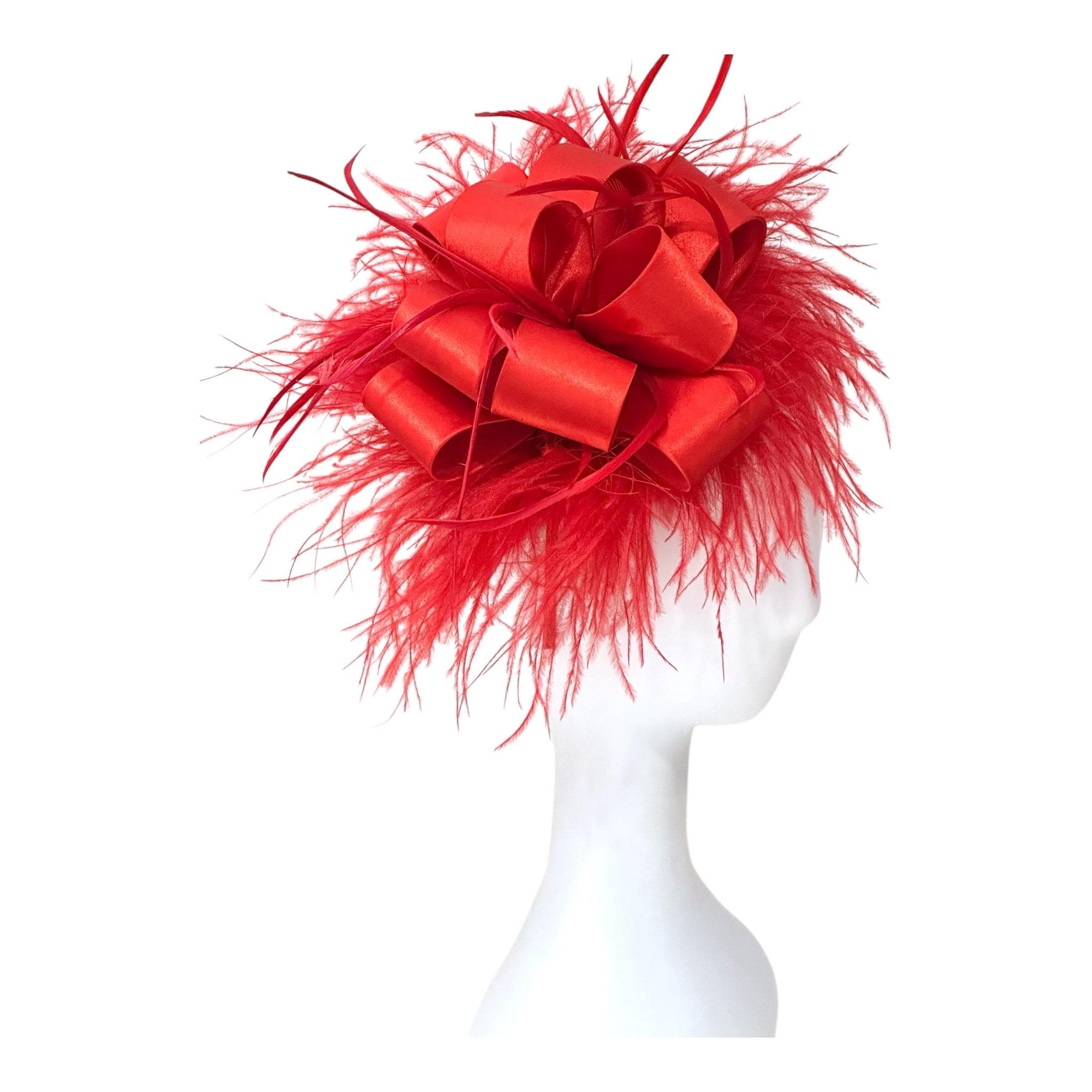 Emerald Fascinator Hat, Choose Red, Dark Green, Navy or Feather Fascinator Hat, Satin texture with Marabou and Ostrich and Coqui feathers on a satin lined metal headbandPerfect for the holiday party!!