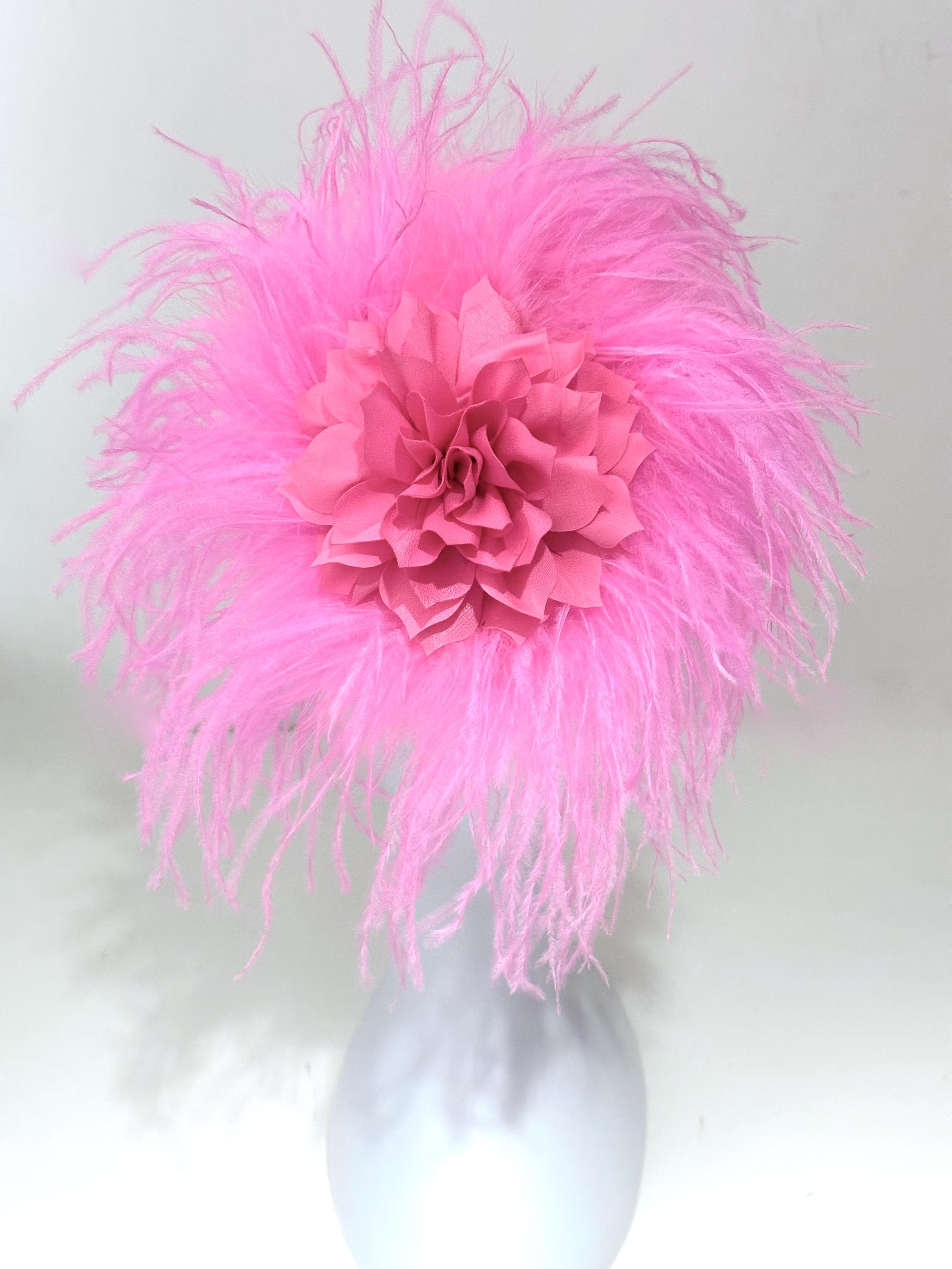 Feather Fascinator Hat, Bright Pink Feather Flower Fascinator ( All colors)