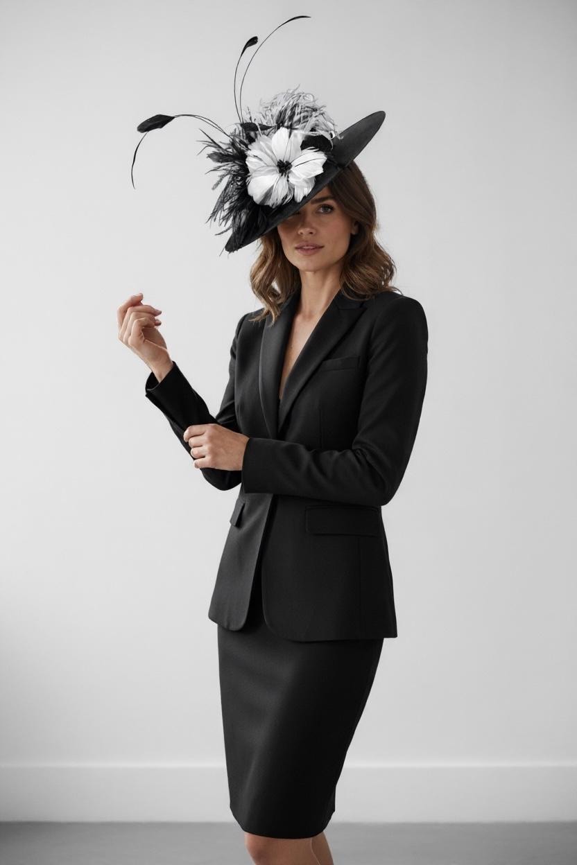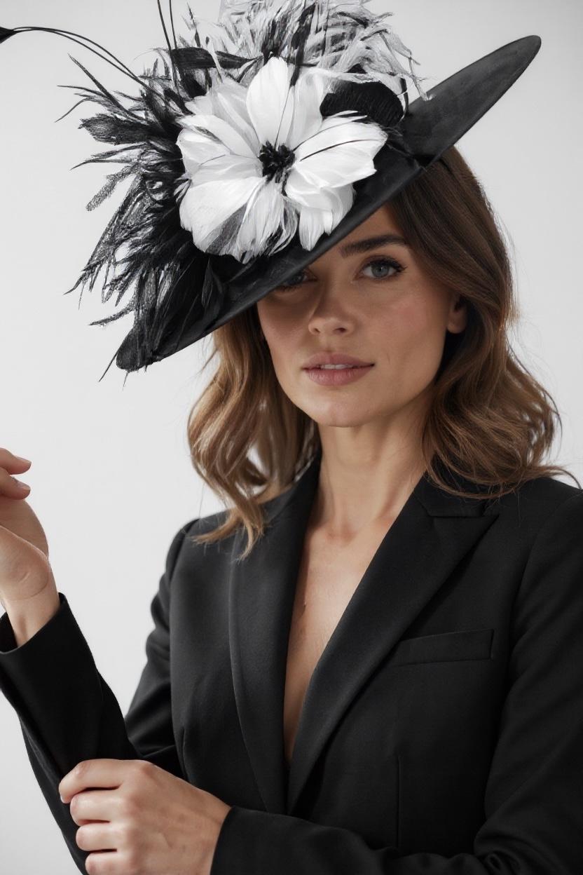 Black and White Feather Fascinator Hat, Kentucky Derby Fascinator Hat,Black and White Ostrich Feather Boater Hat Fascinator 3D Fascinate- Look Fabulous at every angle!