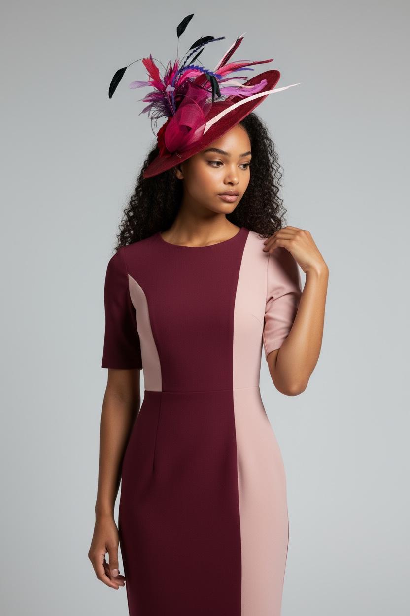 Dusty Pink, Hot Pink, Purple, Plum, Black Feather on a Big 23cm Big Fascinator Hat
