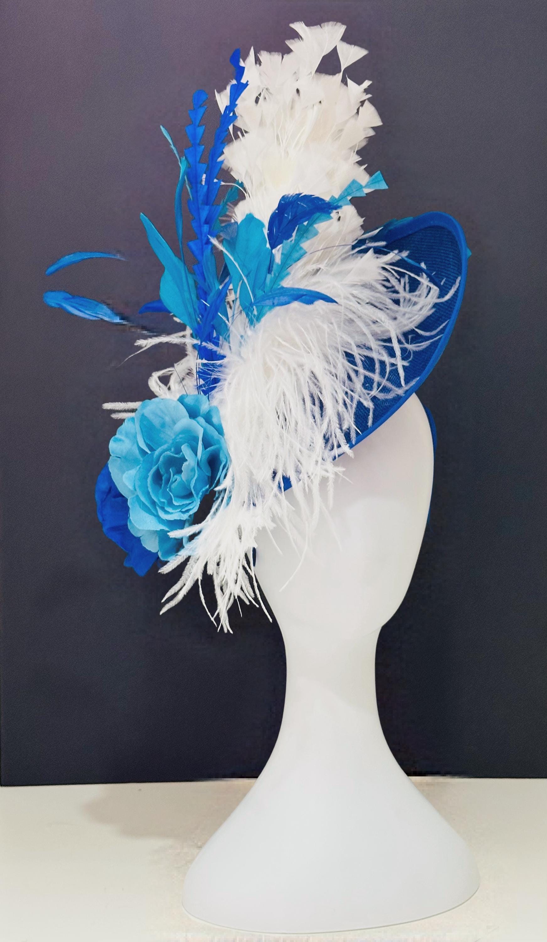 Royal Blue Kentucky Derby Fascinator Hat, Royal Blue Lake Blue White Fascinator Hat, Turqouise Royal Blue Derby Fascinator Hat for Women, 3D Fascinator!!