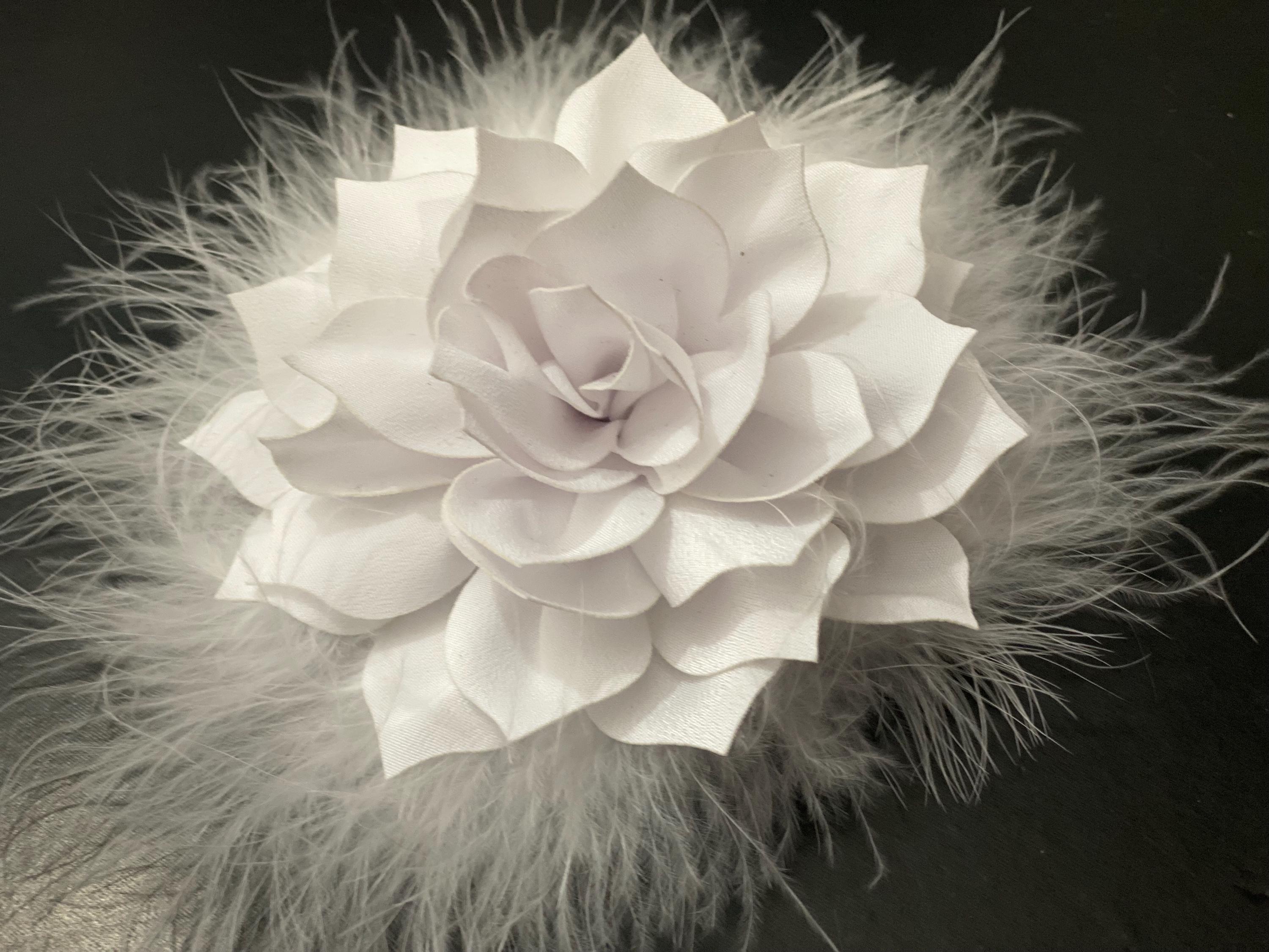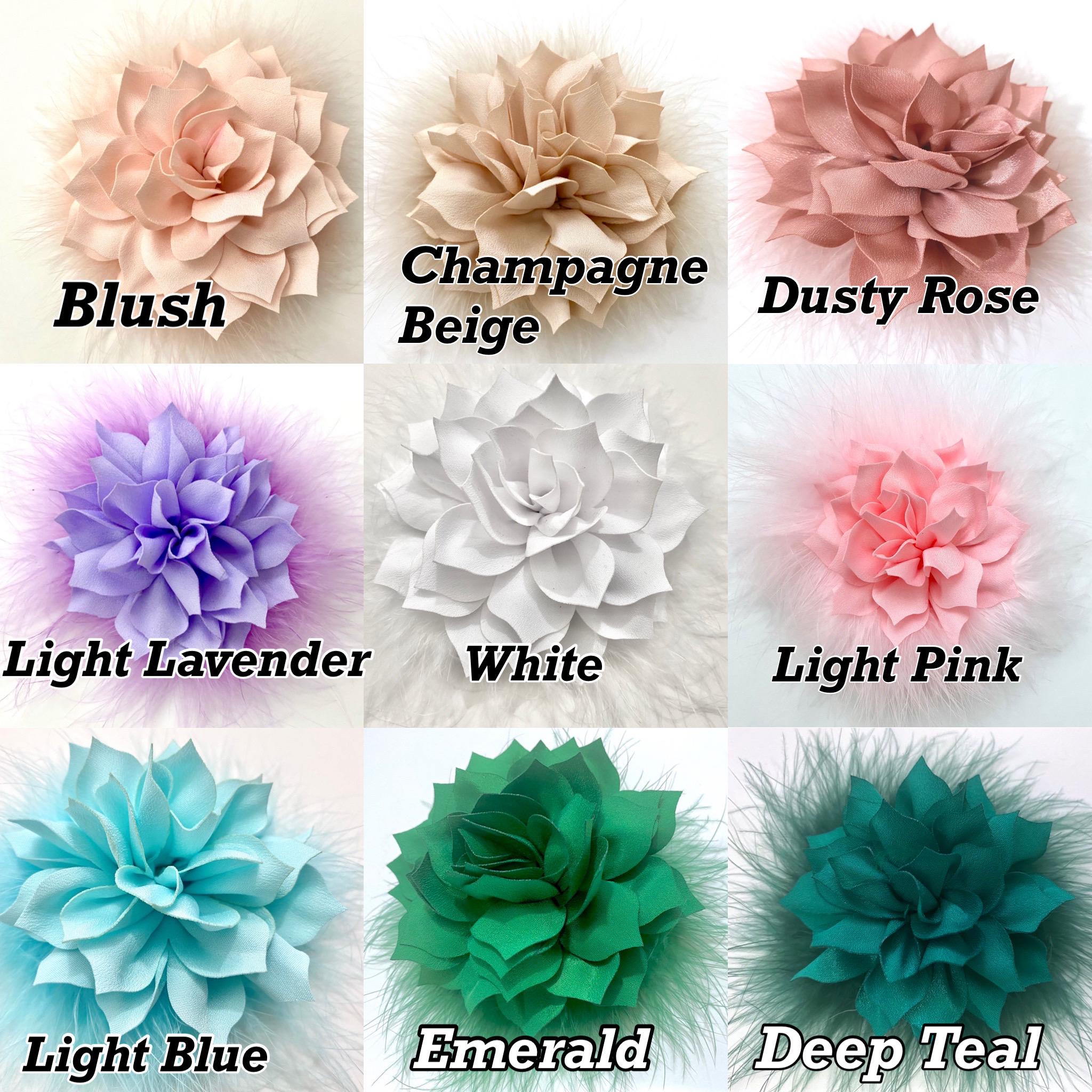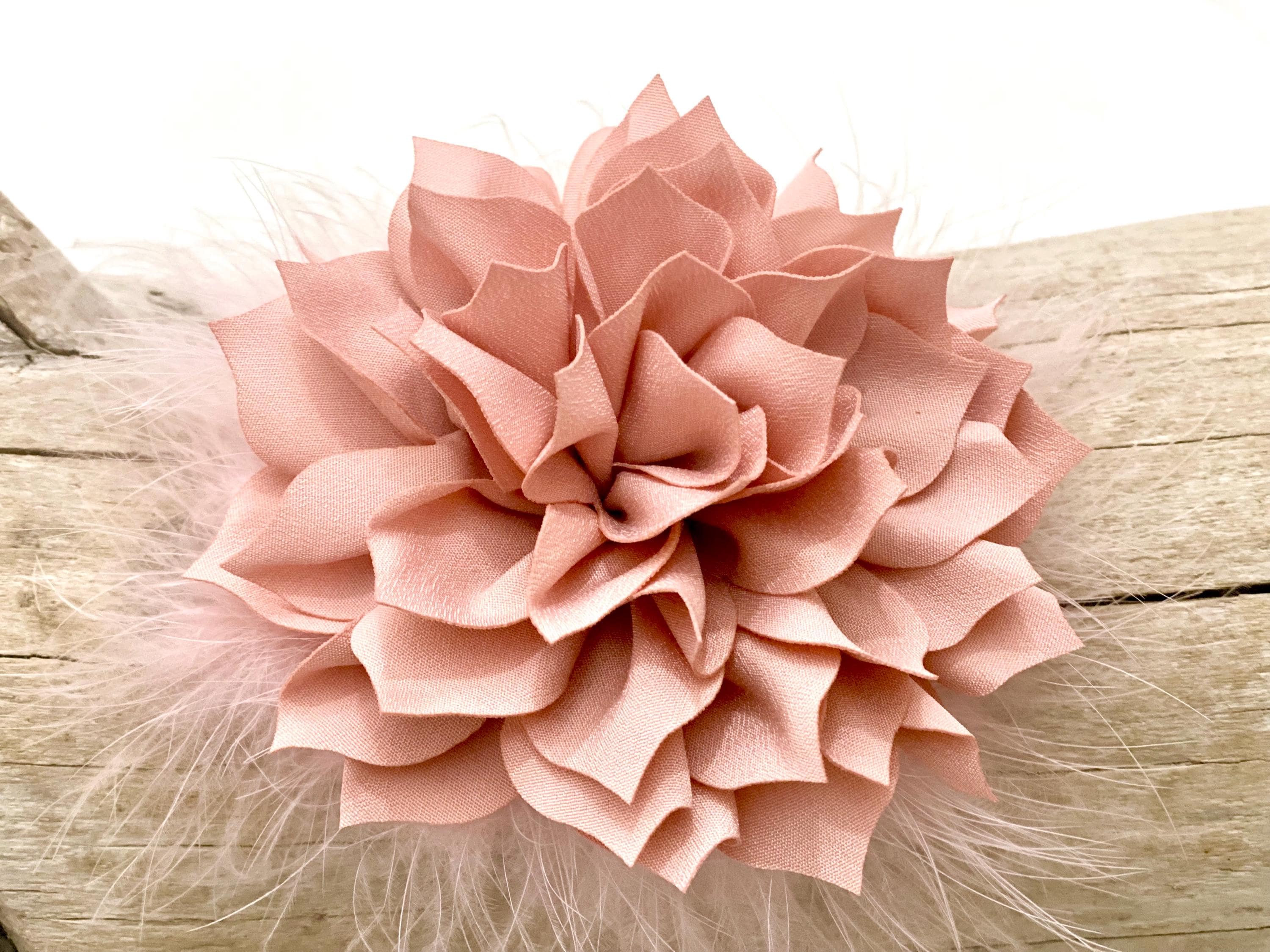Flower Brooch Pins or Flower Hair Clips4.5 Sateen Chiffon Flower with Marabou feather Message me for more customization