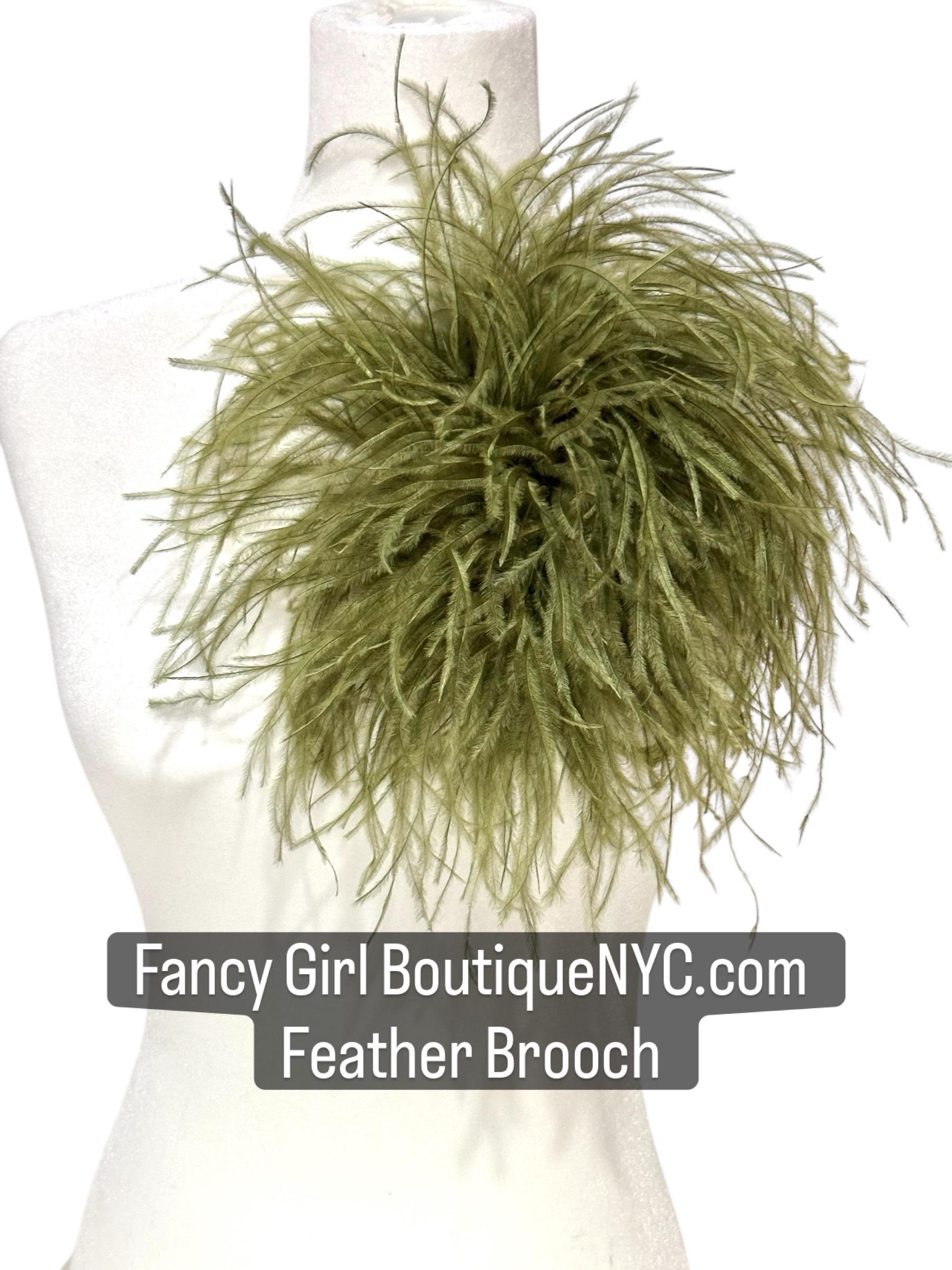 Black, Mocha Mousse Brown Feather Brooch Pin, Army/Olive Green, Beige, Black, Navy Seaweed Green, Dusty Rose Ostrich Feather Brooch Pin