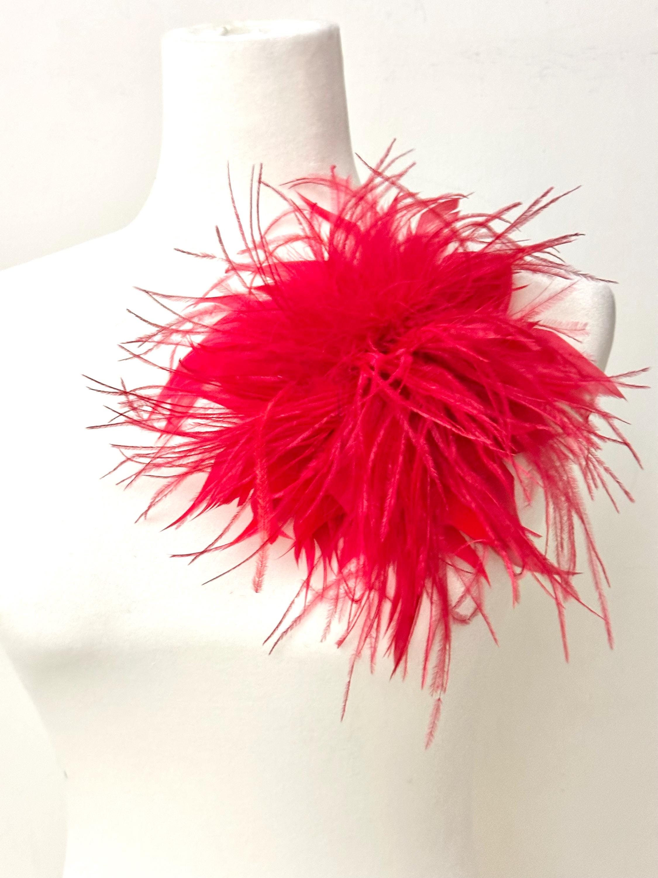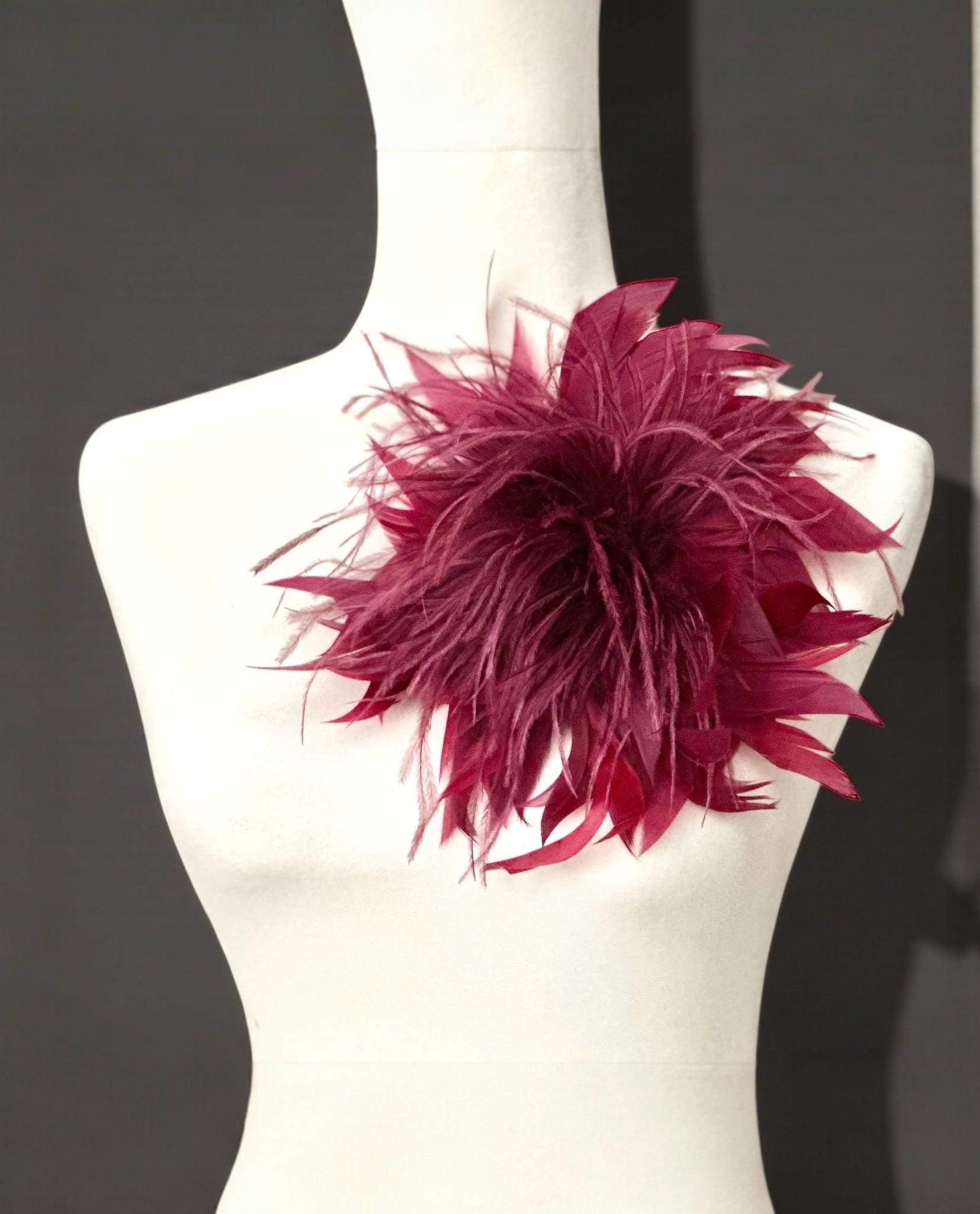 Red Feather Brooch, Ostrich Feather and Turkey Feather Blend Oversized Feather Brooch Pin, Available in Burgundy Wine, Dark Green, Mediun Beige, Med Dusty Rose, Royal Blue Ostrich Feather and Turkey Feather blend.8 inch