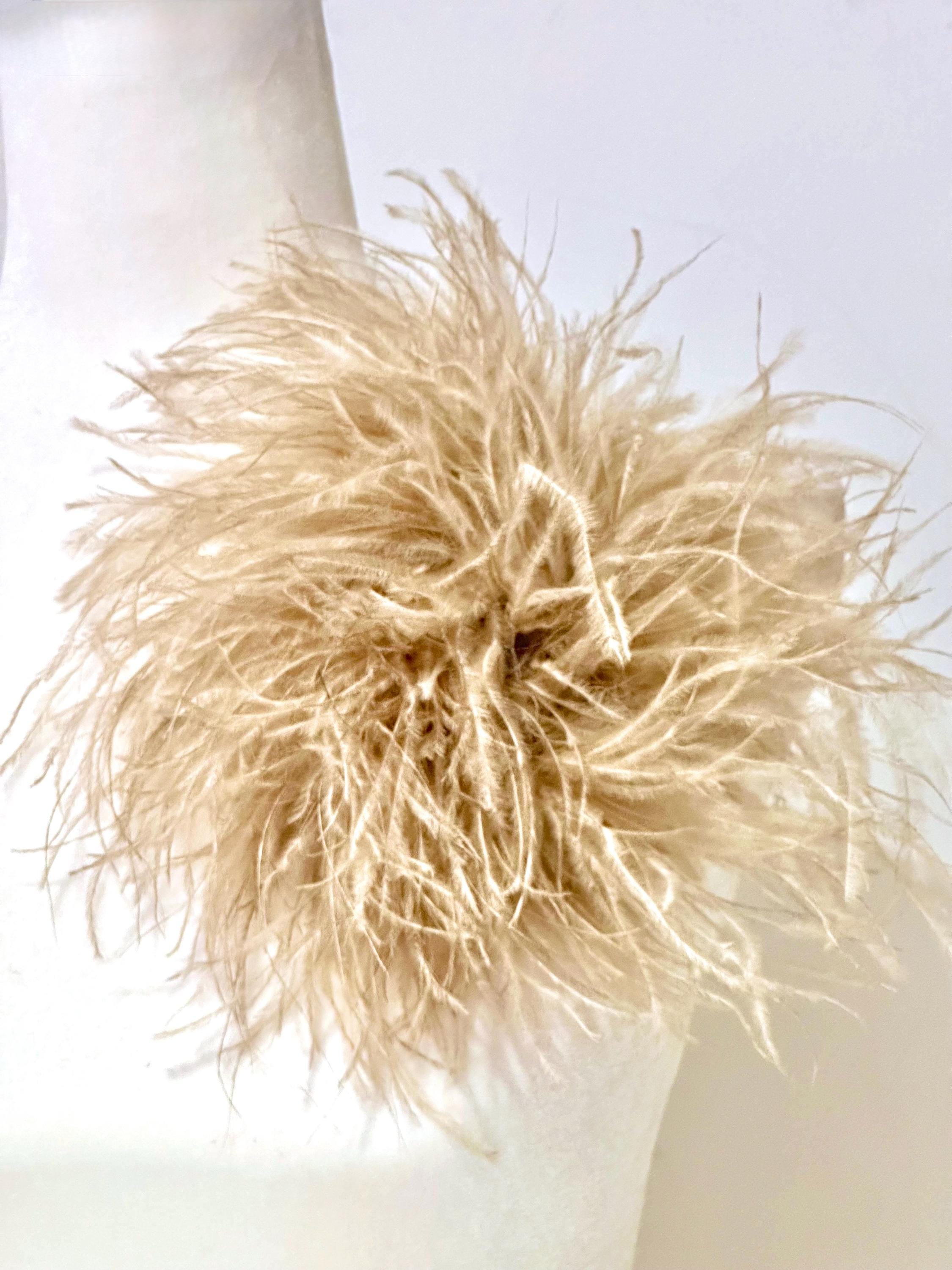 Mocha Mousse Brown Feather Brooch Pin, Army/Olive Green, Beige, Black, Navy Seaweed Green, Dusty Rose Ostrich Feather Brooch Pin