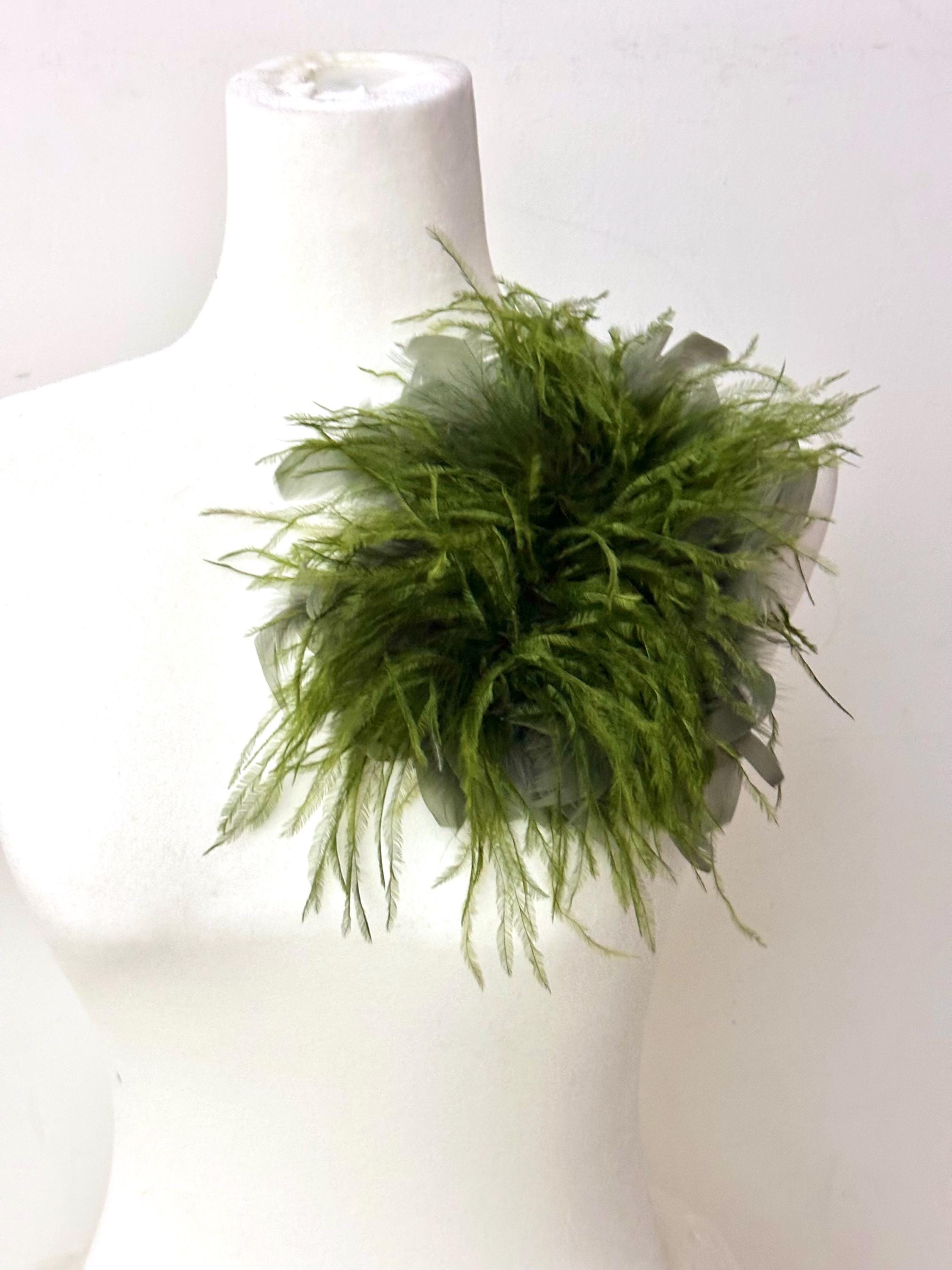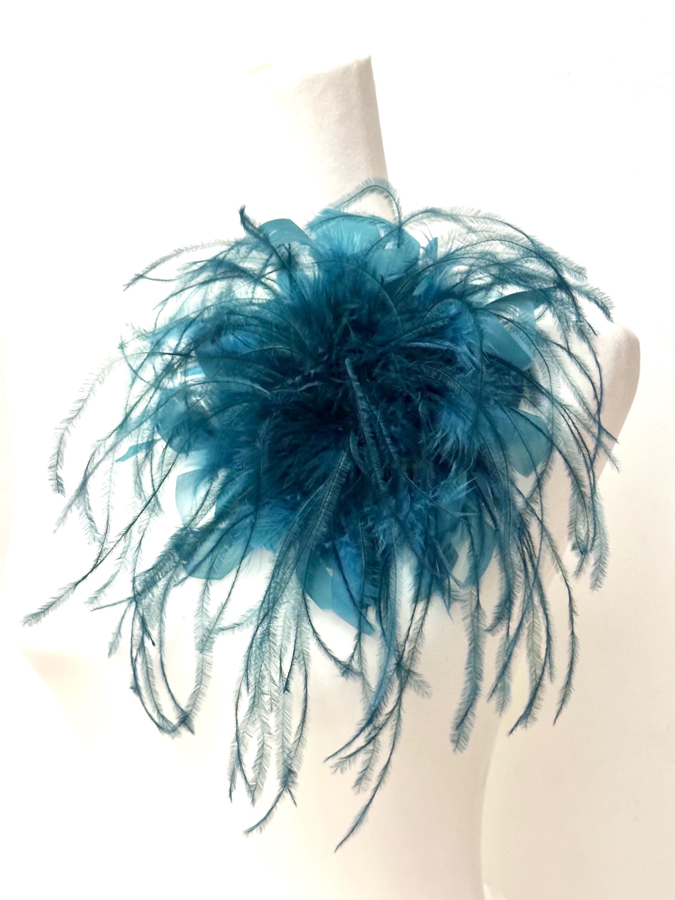 Custom Feather Brooch Pin, Mocha Mouse Brown ( 2 tone)Dark Teal, Army Green ( 2 tone)Made with Ostrich Feather and Turkey Feather***Limited edition colors*** 8-10 inches