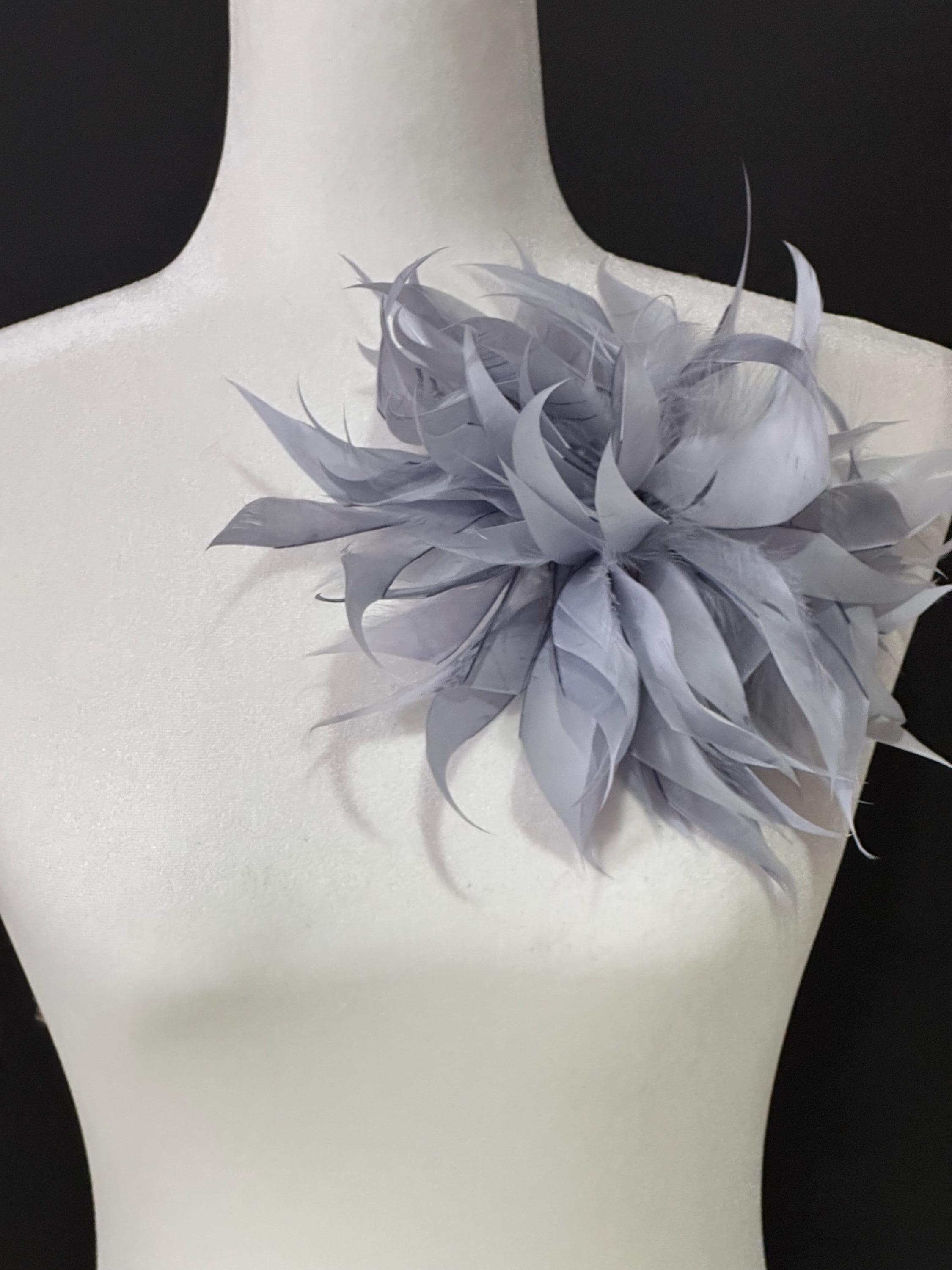 Feather Brooch Pin, Feather BoutonnièreSilver Gray Blue Measures ranges 23cm/from 6-8 inches wide, and about 4 inches high…