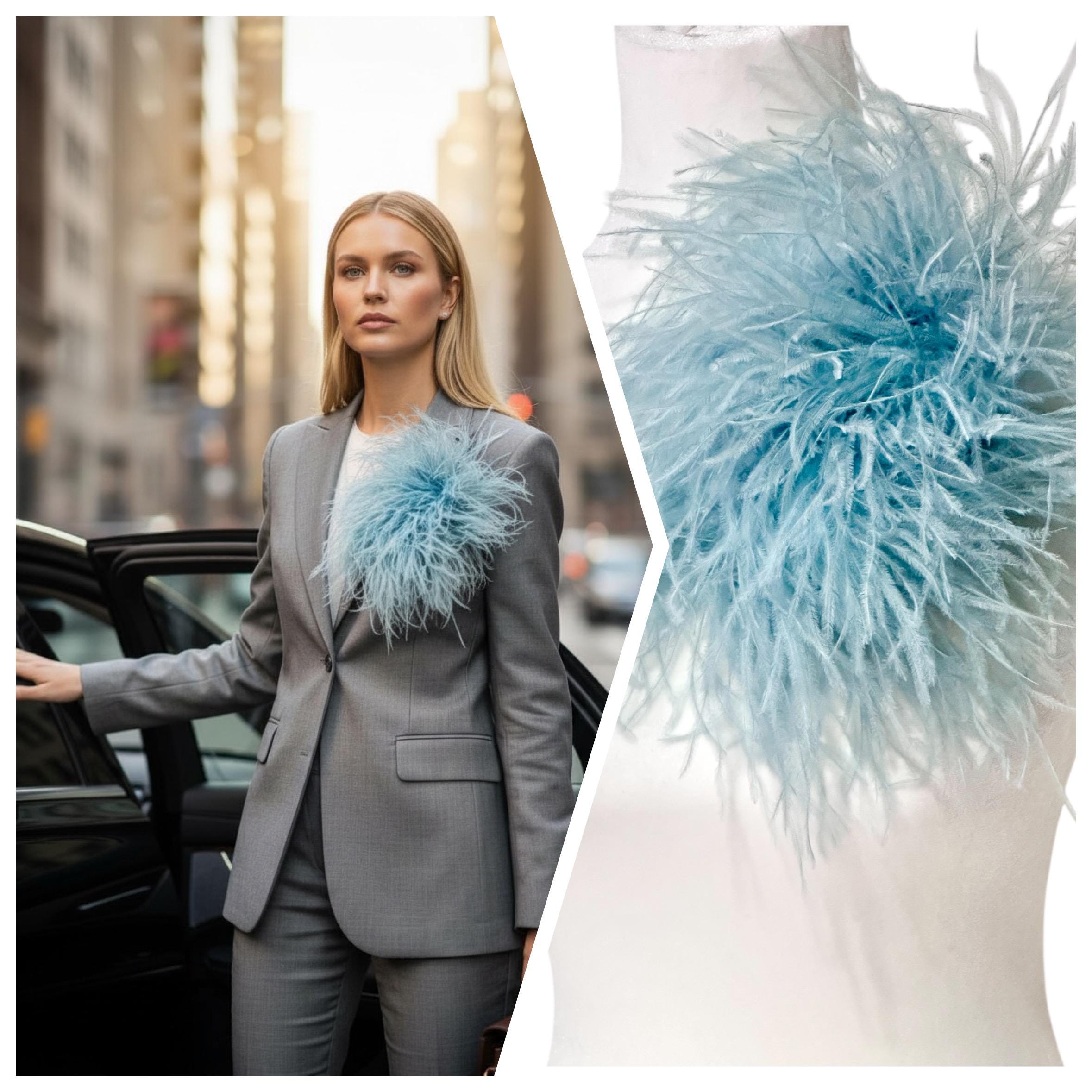 Mocha Mousse Brown Feather Brooch Pin, Army/Olive Green, Beige, Black, Navy Seaweed Green, Dusty Rose Ostrich Feather Brooch Pin