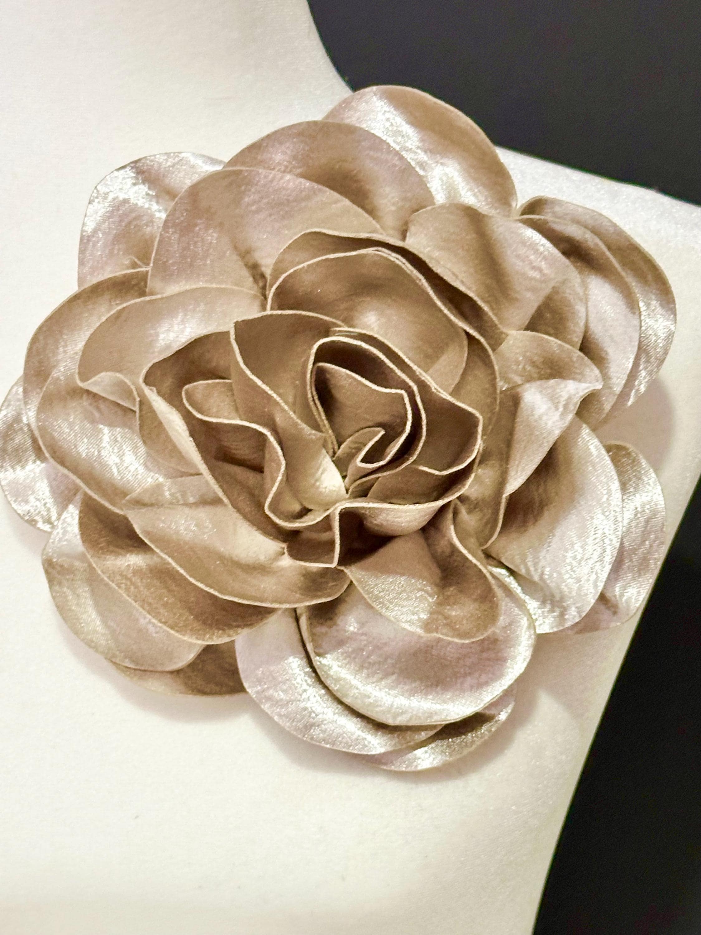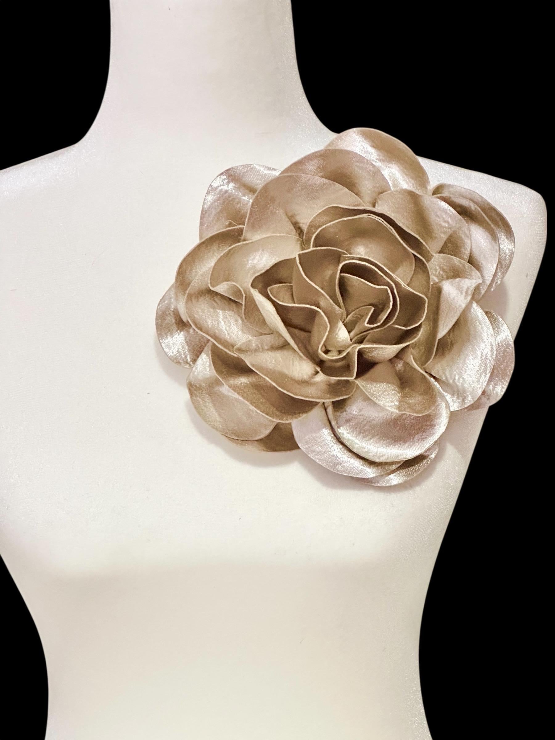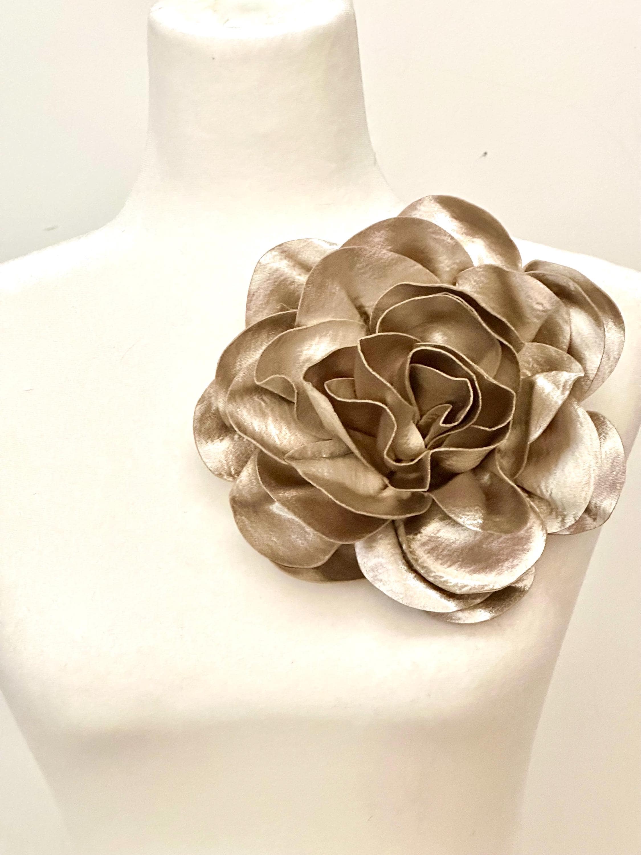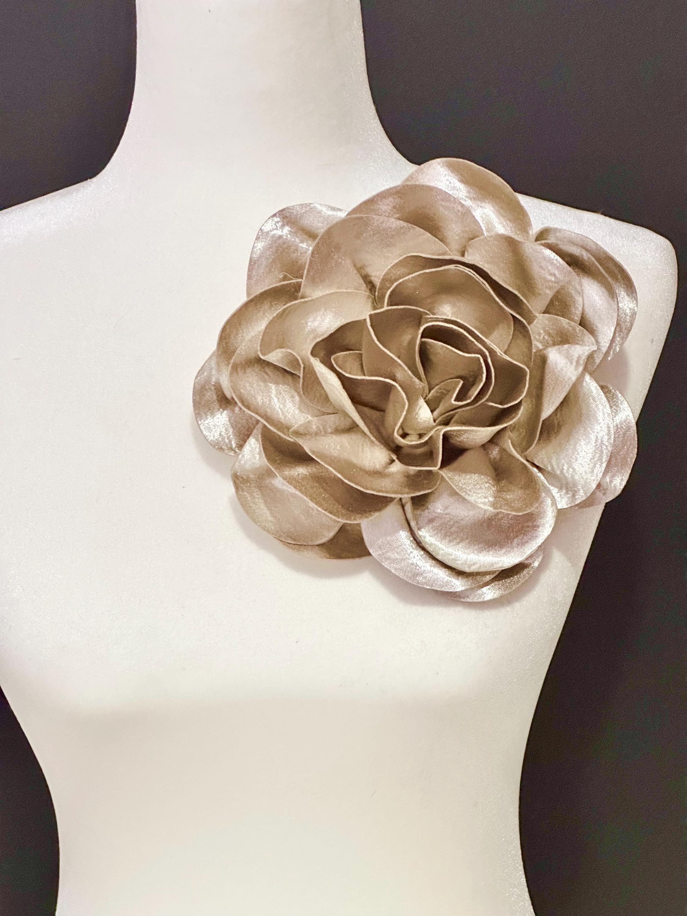 Large, gold, metallic flower brooch ...8 inches/ 19cm