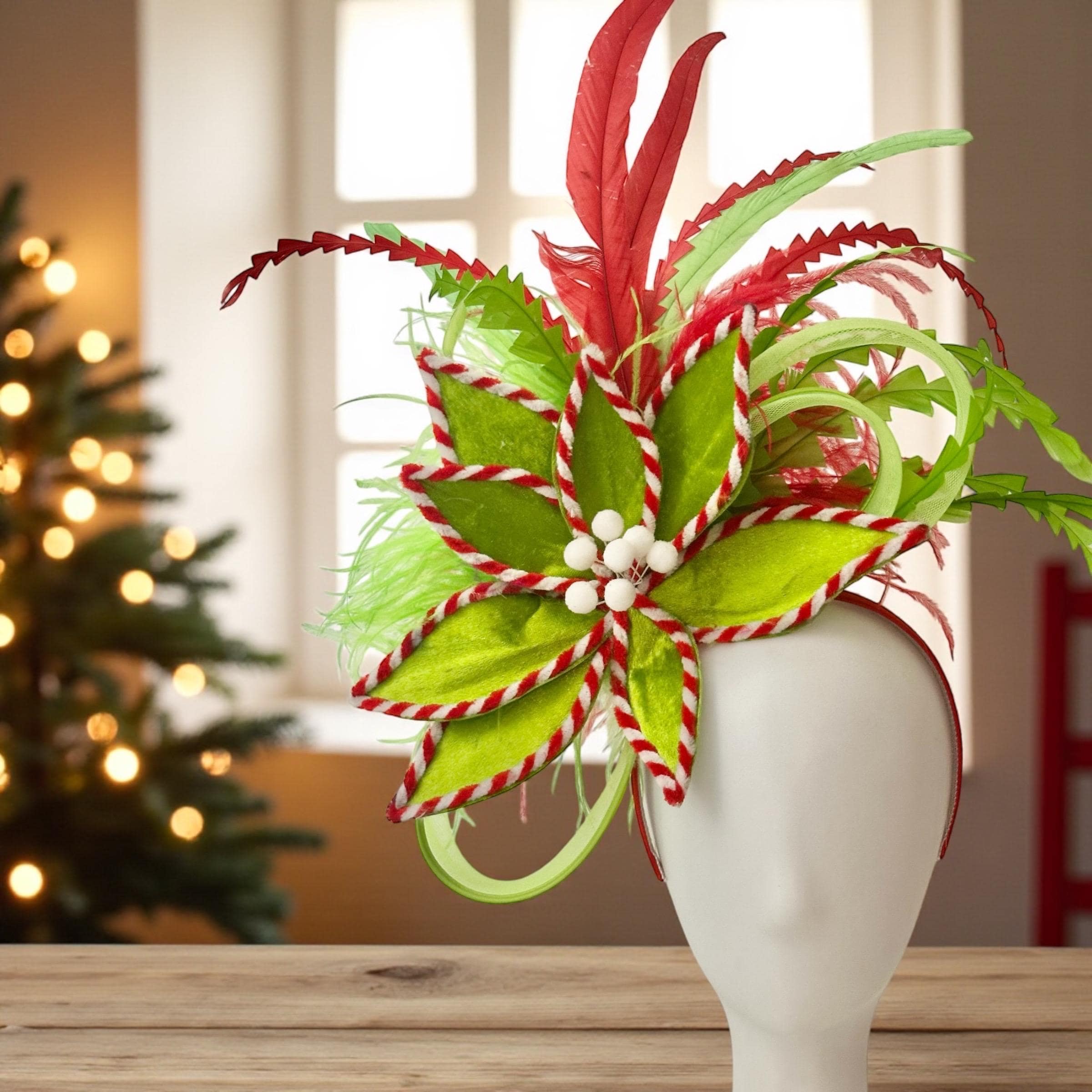 Christmas Fascinator Hat, Couture Feather Fascinator Hat,