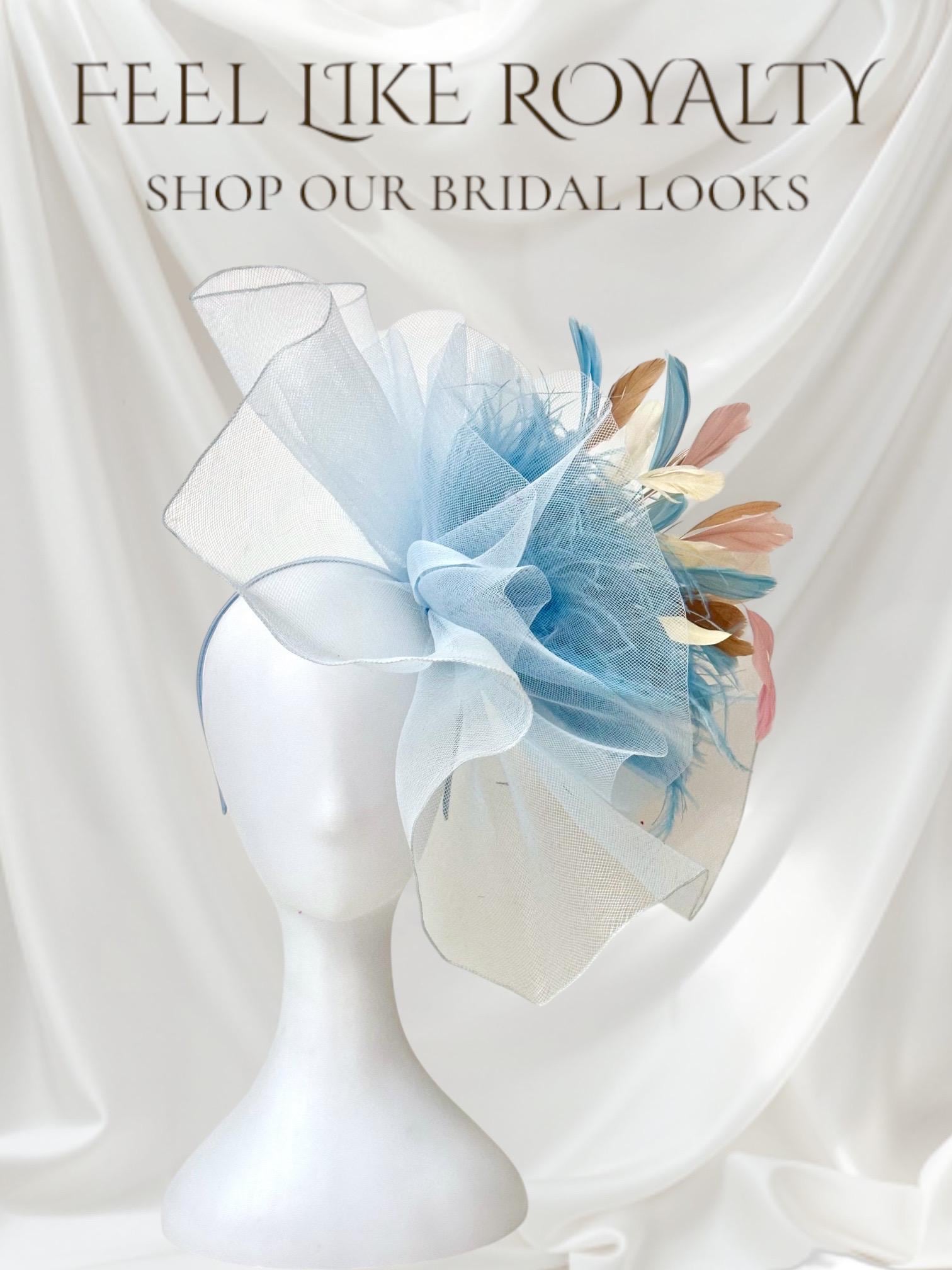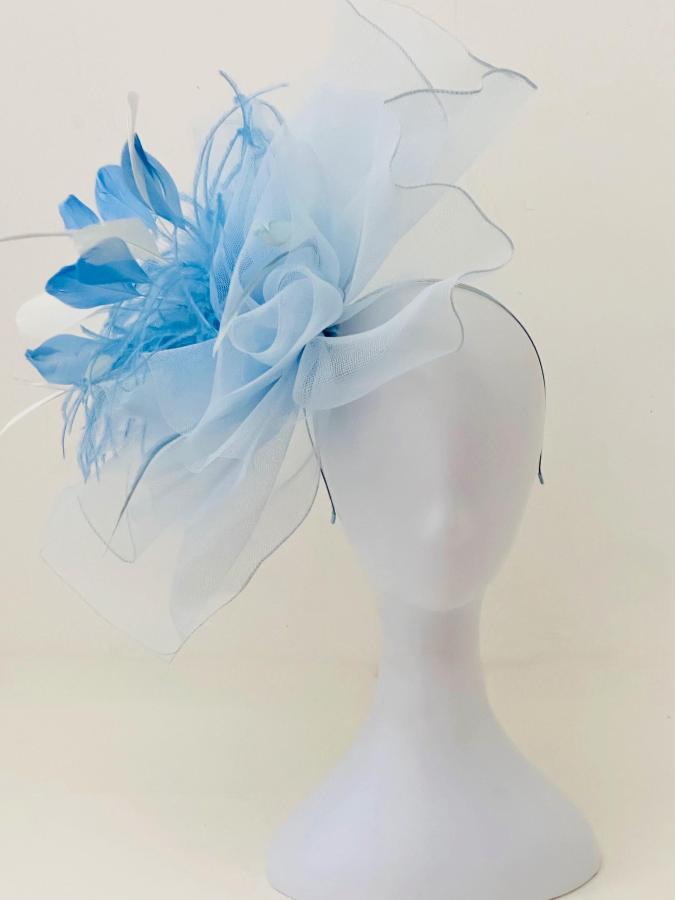 Blue White Derby Fascinator Hat, Sheer Light Blue Crinoline Fascinatorwith Blue/ Milky White Coque Feathers, with Long Marabou Ostrich Feathers!! Perfect for Derby, Weddings, Church.....