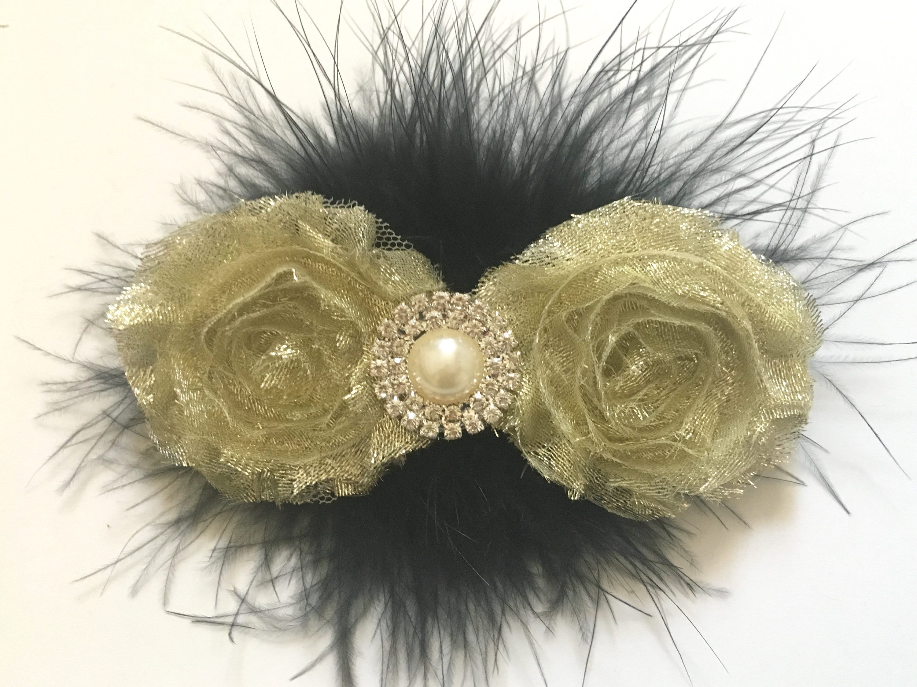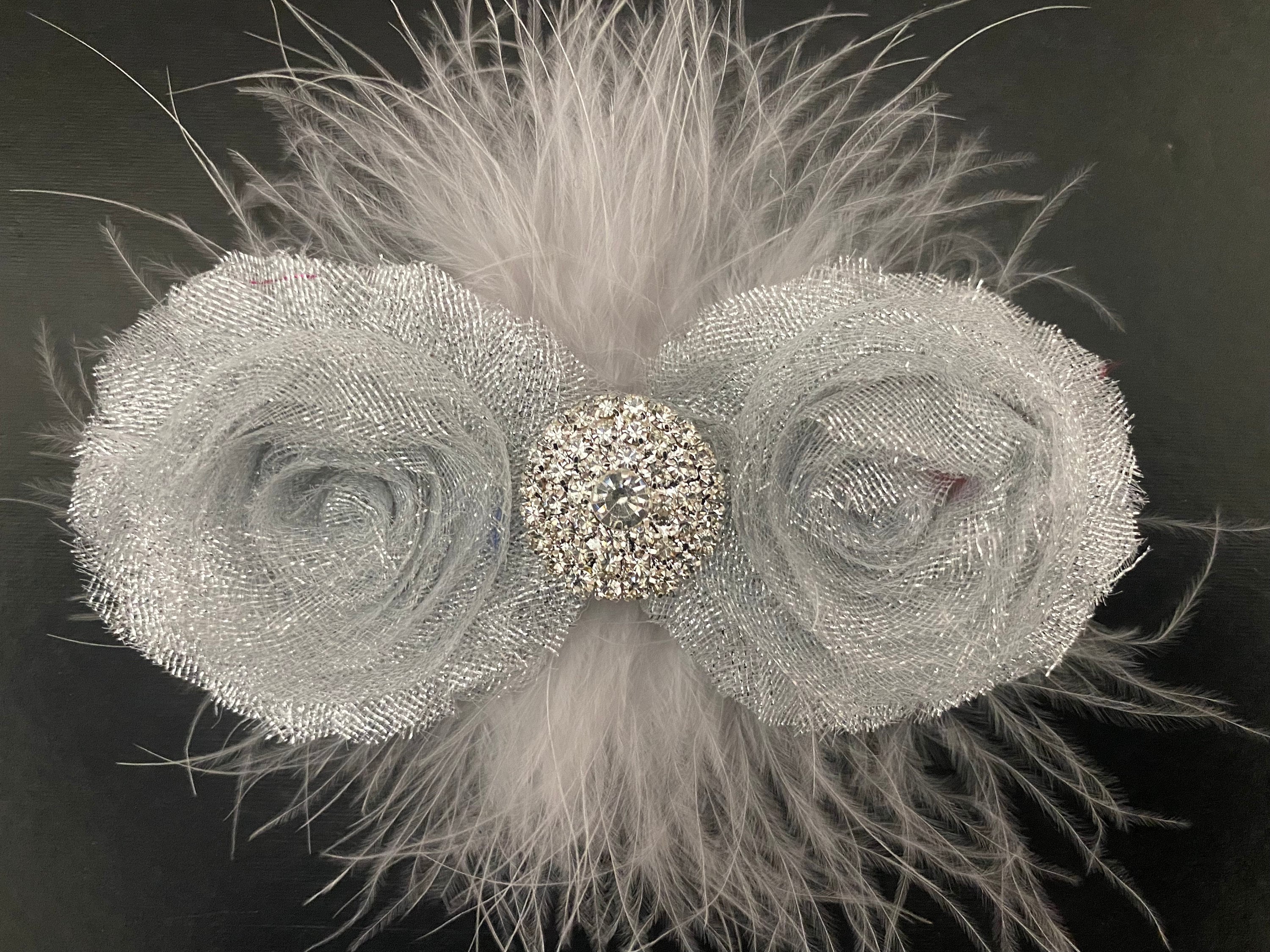 Dance Hairpiece, Royal Blue Glitter Hair Clip, Customize Glitter Chiffon flower Clips,All Colors: Red,White, Gold,Silver, Black Glitter ShabbyChoose your color marabou feather.Message me for your customization